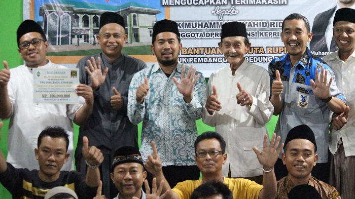 Syahid Ridho menyerahkan dana hibah kepada Yayasan Masjid Ishlahul Ummah dari advokasi melalui Anggaran Pendapatan dan Belanja Daerah (APBD) Kepri.