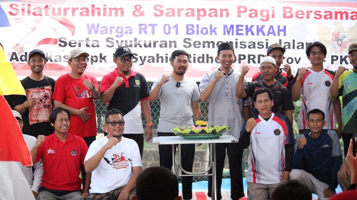 BATAM - Anggota DPRD Provinsi Kepulauan Riau (Kepri) Muhammad Syahid Ridho membangun semenisasi jalan di Perumahan Bumi Sakinah, Tembesi. Warga menggelar syukuran dan mengucapkan terima kasih atas bantuan advokasi ini.